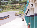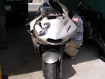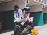 | よく晴れた6月最初の土曜日今年のエビ耐にYZF−R6で出場予定のチーム全員とVFR400R(NC30)もしくはGSX−R600で出場予定のナイーブとお手伝い兼ドライバーのハッスルの計5人で練習走行に行ってきた様です。 予報通りに晴れて、暑すぎるかと思われた予想気温は程良く心地よいくらいだったそうです。 走行が始まりナイーブは順調にタイムが上がり自己ベストを更新!RGV−ΓのCANA嬢は何故か腰が痛く調子よく走れず1本目を終了、H川君はYZF-R6に慣れる為に慣熟走行に徹しメルヘン王子は何となく走行してた模様。 ナイーブは最近ちょこちょこと練習に行ってる成果が徐々に形になり出してるようで調子良く走行を重ねてた様です。 皆がお互いに色々なバイクを乗りながら練習してる内に大変な事件発生!!! この日初めてYZF-R6に乗ったCANA嬢が5周目まで慣熟走行し6周目のメインストレートでいきなりアクセル全開にしたらしく、今まで経験した事が無い加速感を満喫。 エビスサーキットのメインストレートは14%!!というとんでもない登り坂な上に登り切ってコントロールタワー前に出るところでカクンと急激に路面の角度が変わり速くて軽いバイク達は簡単にウィリーしてしまいます。 ちょこっとウィリーしちゃったくらいなら問題無いんですが何とCANA嬢はジャンプしちゃったらしく、しかも本人の体まで浮いちゃって一瞬YZF-R6と離ればなれに。慌てて手を伸ばしハンドルにしがみついたら急激にハンドルを切る事になってしまいバイクはそりゃぁ〜も〜大変な事になってしまいました。 200Km近く出て真っ直ぐ走ってる状態のバイクのハンドルを急激に切るなんて普通スタントマンでもやりません、何故か?とっても危ないからです。 それをやってしまったCANA嬢凄いですさすが女王様、しかしYZF-R6はそんな事されたら怒ります。運転してるライダーを振り落とそうとハンドルは勝手に左右に切れるは上下左右前後と3次元的に暴れまくります。 でもCANA嬢はその時とっても冷静だったらしく『このままじゃまずいっ!転ける』『何とか振れを収めてブレーキでスピードを落とさねば』と滅茶苦茶暴れるバイクの上で孤軍奮闘最後まで諦めずに戦ったそうでストレートも終わりに近づきもうすぐ1コーナーって所でようやく振れは収まり『よしっ!ここからならブレーキ掛ければ何とか1コーナー曲がれる』と思いブレーキを掛けたらフロントブレーキが効かない!?もう一度ブレーキ掛けるもやっぱり効かない。 何とかリアブレーキを掛けたがそれ程減速出来ずに1コーナーに入れず真っ直ぐに飛び出してギリギリまで減速し被害を最小限に止める道を選択するもダートに出る前にリアがロックして流れ出しブレーキハイサイド!! 顔面右側から路面に叩き付けられながら着地、本人曰く『シールド越しに路面が近づいて来るのがハッキリ見えた』そうです。後日医者に行ったところ肩胛骨にヒビが入ってたそうですが、去年今年と連続で転けて骨を折ってから逆に転けるのが怖くなくなったそうです。 一部の男連中に爪のあかでも煎じて飲ませたいくらいです。 |