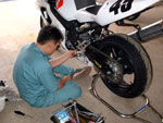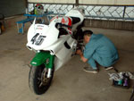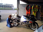 | 火曜日の夜に急遽決まった筑波サーキットびっくりトンカツ杯。 今年のエビス3時間耐久レースにCBR600F4iで出場予定の私が一度は乗っておきたいなと思ってたのですが、丁度梅雨時なのでいつ行ってもどうせ雨が降るだろうからと諦めてたました。 がっ!?15日の火曜日に筑波サーキットの週間予報を見たら暫く晴でしかも湿度も低く穏やからしい。走行予約の空き情報を見たらガラガラ状態!これは走りに行くしかないと思い水曜日の当月予約を速攻で取り金曜日は午後4時頃まで店を閉める覚悟を決めてずんと二人で走りに行くことに決定!!!! ずんが『店閉めてても良いんですか?』と聞いてましたが、『今は年中無休でやってるからたまには休もう、社員旅行代わりにしちゃえばいいよ』って事にしました。 約1年振りにサーキットを走りましたがやはり全開で走れるってのは楽しいですね。お客さん達はちょこちょことエビスや筑波に走りに行ってるのですがいつも話を聞くだけだったので私もフラストレーションが溜まってました、一気に解消しましたが。 ずんの方から『タイムでびっくりトンカツ杯をやりましょう』と言ってきたので快諾し、昼飯代が浮くのがその時点で予想出来ました。 マシンが全く同じ状態でもまだ負ける気がしないのに、私はST仕様のCBR600F4iでずんは多少改造してるけもど街乗りのGSX-R600と二人共借り物ですが冷静に考えてST仕様の方がポテンシャルは上ですから。 スタート前からハンデを貰ってる形だしずんから言いだした事なのでお言葉に甘えてこてんぱんにやっつけておきました。 タイムは私が4秒台真ん中〜後半でずんが5秒台後半〜6秒台真ん中でした、まだまだ近頃の若者には負ける気がしませんね。(当店のお客さん達限定) F4iは足回りが非常に硬すぎなのとインジェクションのマップが何かおかしい様で減速時にアクセルあおっても全然ついてこなくて非常に乗りにくかったのが印象的でした。 前オーナーはTIサーキットや鈴鹿サーキットでレースに使ってたらしいのですが、何か変なセッティングなのでエビ耐本番までにはちゃんと直したいと思います。 GSX-R600は予想以上にキッチリと走ったらしく、ずんは『新品タイヤ履いてBの走行がしたい』と言ってました。一緒に走ったらもっとこてんぱんにやっつけてやります。 |