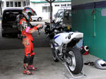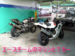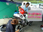 | 9/19(日)エビスサーキットにエビ耐の公式練習で走りに行って来ました、エースチームとセカンドチームのプライドを賭けてお互いに叱咤激励やエール交換と言う名の罵倒を浴びせあいながら(^_^;) 当日は朝から何となく雨がパラつきどんよりした低い雲が立ちこめる嫌な天気でしたが、朝9時からのオープンクラス走行が始まる頃には雨も止みちゃんと走れる状況になりました。 がっ!?ほとんど上がっていた雨も走行時間も残り15分程で私のパートになった途端にポツポツと............またか?またなのか?どうして私が走ろうとすると雨が降る? そんなに普段から行いが良くないのだろうか?何か素行に問題があるのか?一切心当たりはないのに。 そんなこんなでキチンと走れない内に3年ぶりのエビスサーキット、路面全面張り替え後の初走行は終了してしまいました。話には聞いていたけども路面改修後のエビスは本当にギャップが酷い、と言うか何カ所かはギャップと言うよりこぶと言うよりジャンプ台?って感じでびっくりしました。 アスファルトの質は悪くないのですが、所々でのギャップが以前にも増して酷くてコース攻略がかなり難しくなってました、10数年前と比べて。 まぁ路面状況に関しては全員平等なのでそれなりの走り方を考えましょう。 前日にエビス入りして虎の穴を受講していたてっちゃんRは何か手応えと言うか得る物が大きかったらしく、とても楽しそうに前回よりも安定して周回を重ねてました、タイムはあまり気にしない事にして....... 久しぶりだったのともし転けてマシンが壊れた時の事を考えて私のVTR1000Fも持って行ってたので最初の2本は私がVTRでてっちゃんRがF4iで交互に走りましたが、二人とも予定していたタイムには程遠くてますますセカンドチームを調子づかせてしまった様です。(本番ではきちんと逆転しますが) R600チームは前後のサスペンションセッティングを大幅に変更してきたのが外れたらしく2本目の途中まで苦戦してたようですが、何度かピットインして調整してる内にそこそこいい状態には出来たらしいです。 3本目の走行まで約1時間30分程あったのでのんびり構えてたら気が着けば走行5分前で慌てて着替えました。3本目で私がこの日初めてF4iに乗ってびっくり!?以前筑波で走った時にはあれ程乗りにくかったのに前日の虎の穴で調整して貰った前後サスが良い動きをしてくれてとても乗りやすくなってました。 以外と楽しく良い感じで乗れてたので軽く4秒台でもしかしたら3秒台に入ったかな?と思ってたのに走行後にチェックしたらなんと5秒台しか出てなかった(T-T) 5秒台と思ってて5秒台なら良いんですが、3〜4秒台と思ってて5秒台ってのは非常にマズイです。それだけスピード感覚がずれてるって事だから。 私も結構な歳になってきたのでしょうが無いとは思うのですが、ちょっと、いやだいぶ、いやかなりショックでした(×_×) てっちゃんRは3本目もF4iで安定して走れてたので全体的に底上げすれば良い感じになるかも?R600チームは3本目にBSタイヤを履いて一気にタイムを縮める作戦だったらしいのですが、ついさっきだいぶ良い感じにまとまってきたサスセッティングが全然合わないらしく、ピットインアウトを繰り返して調整してましたがイマイチらしいです。 しかもずんが延々と走っててナイーブは殆ど走行出来なかった様でした。 本番に向けて両チーム共ある程度の課題が見えてきたので何とか仕上げたいです。 あくまで本番での順位(正式結果)でエースチームとセカンドチームの地位をハッキリさせてきます(まぁ結果はハッキリしてて私とてっちゃんRのCBR600F4iですけどね) |