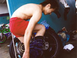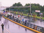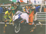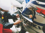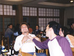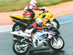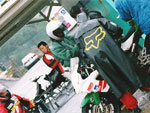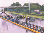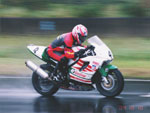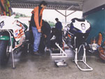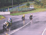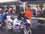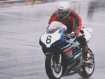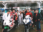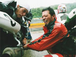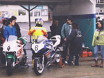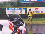 | 本当にとっても久しぶりに思いっきり走り、思いっきり飲み、思いっきり喰って、思いっきり笑って過ごせた二日間でした今年のエビス3時間耐久レースは。 結局土曜日の公式練習も日曜日の決勝も台風22号の影響でず〜〜〜〜っと雨だったので言う程走り込んでは無いのですが、私にとっては逆に雨だったのが良かったかも?って感じでした。 8日金曜日の夜に出発した時点でかなりの雨が降ってて、首都高はそれ程酷くはなかったものの東北道に乗ってからはずっと豪雨で50km/h規制が続く程雨足が強くワイパーをフルスロットルで動かしてもボンヤリとしか前が見えない程でとても危険な状態でした。 何とか早朝5時頃エビスサーキットに到着してちょこっと寝ようとした途端にいつもよりだいぶ早くゲートオープンになりピットを確保した時点でも当然全開で雨が降ってて『今日はもう無理!走らない』と決断、ナイーブとてっちゃんとてっちゃん彼女と朝っぱらからピット内で宴会開始。 走行が始まる8時半前には車の中でぐっすり就寝し、起きたら全ての走行は終了していました。あの雨の中あんなに必死に走ってきたのは何だったのだろうか? 午後からの受付や車検やブリーフィングは一応問題なくこなして決勝に向けての準備も終了したけどもまだ早い時間で何をしようか迷う程。 今回はあまりにもず〜っと雨が降ってたのでコース外にある貸しガレージを借りたので一通りやるべき事を終わらしたらガレージへ撤収しそこでまたプチ宴会。 酔いが醒めた頃に後発組も全員揃ったので宿に向かい到着と同時に温泉につかり少し時間をおいて晩飯&またまた宴会(^_^;) 一部では合コンみたいなのもやってたみたいだし...... 部屋に戻ってまたまたまた宴会&テレビでダイハード3をやってたので皆で夢中になりながらも宴会............ 絶対胃腸がおかしくなるってくらい朝から深夜まで飲むか喰うかしてました。 天気予報では予想以上に台風22号がスピードを上げて尚かつ進路を右に(太平洋側)向けて行き、翌日曜日はもしかしたら曇りのち晴になるかもしれないと言う嬉しい情報が(^_-) 明けて日曜日起きたのと同時に窓を開けて外を見ると昨日程では無いにしろ普通に雨ふってるし(T_T) しょうがないのでドライ路面での走行は諦めて取りあえず3回目の温泉に入り宿を出発。 フリー走行で雨の中ドライタイヤで走ってみるもやはりレインタイヤでの走行を決意しタイヤ交換をして慣らしをしようと思ったら予定時間より10分近く早くフリー走行が終わってしまい不安材料を残してしまった、初めて履くブリジストンのレインなので数周でも良いから走っておきたかったのに。 しかし、決勝で私達エースチームのゼッケン4番CBR600F4iと私は予想外にスタートがうまくいきもう少しでホールショットが取れそうでした、でも最初から無理して転んだら洒落にならないので一歩引き2番手で1コーナーに進入、便所コーナーと最終コーナー入口でインをさされたものの1周目を4位で通過しその後も暫く順位をキープ出来て『あれ!?結構行けるんじゃないの?』と勘違いをし始める事に。 セカンドチームGSX-R600のずんはいつも通りスタートに失敗して中段にずっぽりと飲み込まれたらしいです。勘違いエースライダーのてっちゃんにチェンジしてからはどんどん順位が下がっていき折角私のパートで稼いだ貯金を軽〜くはき出されてしまいました、まだ走り始めたばかりだからしょうがないけど遅すぎないか?てっちゃん。 雨の中私が7〜8秒から10秒くらいで周回しずんが12〜14くらいでナイーブもほぼ同じくらい、てっちゃんだけが20〜30秒で悠々と走行(>_<) 頑張れっ!! ライダー交代の度に激しく順位が上下する私達チームとは違いGSX-R600チームはコンスタントに走行し気が着けば途中経過でアナラーオサルローションGSX-R600組が7位でMちゃんLOVE SBS中原CBR600F4i組が9位と少しヤヴァイ状況でした。 その後も一進一退を繰り返すF4iチームを尻目にR600チームは淡々と周回を重ねて順位もタイムも広がるばかりで少し焦りの色が出始めました『てっちゃんっ!もう少し頑張ってくれ!』と心の中で叫びながらも自分のパートで少しでも遅れを取り戻そうとしてる3本目走行終了直前の1コーナーで信じられない光景が目に飛び込んできました。 何と!?ゼッケン6番のGSX-R600とずんがダートに飛び出して転がってるじゃありませんか? 一瞬しか見えなかったけどもずんも怪我してない様だったので『よし!これで勝った』と確信しながら数周後ピットインしてチェッカーまでの最後の走行をてっちゃんに託しおじさんは走行終了、直後に一人だけ飲んで超プチ宴会開始。 ピットインしてきたR600は何とか走れそうだったが右のステッププレートがポッキリ折れててレーシングスピードでの走行不能状態に。誰もが諦めて『しょうがないね』という空気が流れたところでナイーブがピットクルーで来てくれてるガッツに一言『タイラップでぐるぐる巻きに止めろ!まだ走れる!』と。 急い