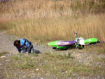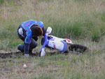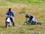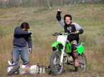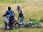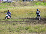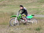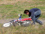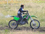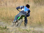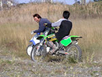 | 朝方は少し寒かったのですが昼間はとっても過ごしやすかった日曜日にオフごっこしてきました。 先月は雨で中止にしたので約2ヵ月ぶりにオフで遊びましたが、やっぱり土の上でバイクに乗るのは楽しいです。この楽しさを知らない(知ろうともしない)バイク乗りの方々は可哀想ですね。 今回は今年のエビ耐で私とペアを組んだてっちゃんと彼女のち○ちゃんが初参加です。 二人して朝の集合時間にブッチギリで寝坊したので置いて行きました、現地に着いて電話したらやっと起きて『今から行きます(_ _)(-.-)(~O~)ふぁ・・(~O~)(-.-)』 最初は恐る恐るぺぺぺぺぺって感じで走ってましたが時間と共にぺぃんぺぃんに進化してきて最後の方では何とか、ぱぃ〜んくらいには走れる様になってましたね。(えっ!?分かり難い?) でもオフ初参加の二人は相当楽しかったらしく、あまり休まずに走り回ってました。特にてっちゃんは何回転けてもめげずにず〜〜〜〜っと走ってたので次の日の筋肉痛はかなり酷かったんじゃないでしょうか? いくらか慣れてきた頃に当店オリジナルスポーツの“D1”を行い、私とナイーブでてっちゃんを軽くやっつけておきました。奴はまだまだチョロチョロなんですが、何しろ体重があるのと重心が低いので簡単には倒れずにちょびっと苦労しました。 こちらはおじさんなので長期戦になると体力が持ちません、短期決戦にしたかったのになかなか倒れないので、こちらが勝手にダウンしそうになりヤバかったです。 来月12月は19日(日)にMX408に行く予定です、行けそうな方は遊びにいきましょう(^O^) |