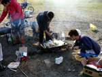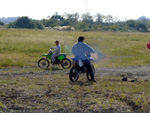 | 11/13(日)店を休んでいつもの相模川河川敷にオフロードごっこをしに行きました。 オフロード初心者のアキラ君と彼女のM理ちゃんとアキラ君の弟君や父と息子で全く同じ顔をしているT葉ちゃん一家と私の愚息(8歳)も一緒に行きました。 当日は天候も朝から穏やかで過ごしやすく、オフ日和でした。 いつもの様に朝8時頃現地に着いてバイクやテントなどを下ろす前に軽くプシュッ!とやり それからバイクやバーベキューや装備の準備をし、ノロノロとまったりした時間が過ぎてゆっくりと走り出しました。 オフロード初心者のアキラ君兄弟は何しろ楽しかったらしく二人してず〜っと走ってましたね、特に弟君はまだ中学3年生ですが『高校に行って16歳になったらすぐ免許取って乗りますっ!!』と言ってました、また一人バイク馬鹿を生み出せた様です。 今回は昼のバーベキューの食材を全く用意していかなかったので、現地のスーパーに買い出し部隊が出動して調達してきました。当然の様に皆さんワガママなので『アイス買ってきて♪』だの『パンチの効いた肉が喰いたい』だの好き勝手言ってましたね。 今回はバイクが足りなくなる事も無く皆さんのんびりゆったりとオフを楽しめたみたいです、またその内にやるので皆さん一緒にオフで遊びましょう |