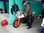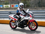 | 私の誕生日&I賀君とK菜ちゃんの結婚記念日の4/9(日)エビスサーキットで2006年第一回目のサーキットランにナイーブとフミヤ君とK田君とO川君が参加してきました。 朝まで少し雨が残ってた様ですが、走行する頃には完全にあがり路面もドライになった様です。 大きなちゃんとしたサーキット初挑戦のフミヤ君はナイーブのTZR250(1KT)を借りて、ナイーブは自分の凄いレーサー02'GSX-R600エビススペシャルをシェイクダウンで、数年ぶりにサーキットを走るK田君はTZR250(1KTと2XT混合)、K田君の先輩で最近サーキット走行に燃え出したO川君は88'RGV-ガンマ250で参加です。 冬の間にエンジンフルオーバーホール&ちょこっとチューンを施したナイーブは恐る恐る慣らし走行なので走りは二の次です、二週間前にミニバイクサーキッデビューを果たしたフミヤ君は本格サーキットデビューでまたもブレーキをあんまり掛けない超人走りを披露するもタイムは・・・・・・・・・・ 数年振りにサーキットを走ったK田君はビビリミッターが作動して納得出来る走りには程遠かったらしいです、O川君もマシンの調子がおかしく一本目の途中で転けてしまいみぎステップホルダーが折れて終了。 午後からの模擬レースに参加したフミヤ君は午前のフリー走行とはうって変わって熱い走りが出来る様になってきてた矢先に最終コーナーで飛び出して大クラッシュ!TZR250は全損と呼べるくらいグチャグチャに壊れてしまいました、本人も暫く動けず数時間後病院に担がれましたが、骨に異常は無く一安心。 K田君は模擬レースが始まってもまだビビリミッターが解除出来なかった様ですが、根性で走り続けて無事にチェッカーを受けれました。 フミヤ君もK田君もO川君も全然納得いかなかったらしく次回も参加したいと言ってました、一緒に行きたい方がいたら連絡下さいね。 |
